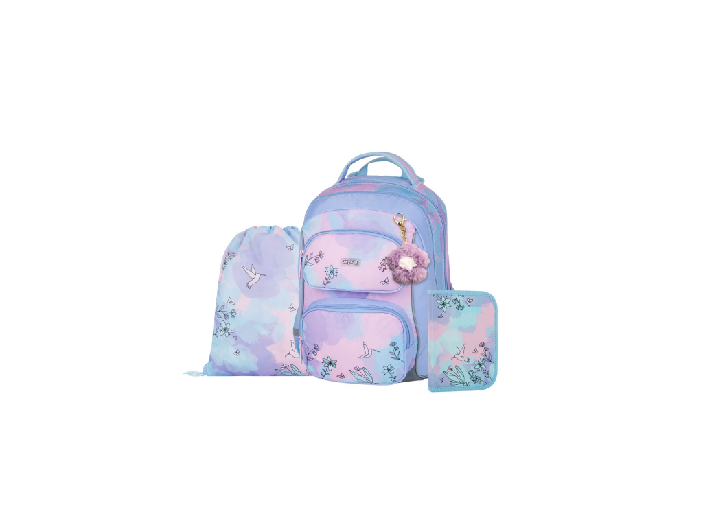 OXY JUMPER iskolai táska szett egytálcás tolltartóval és váltócipő-tartó zsákkal: