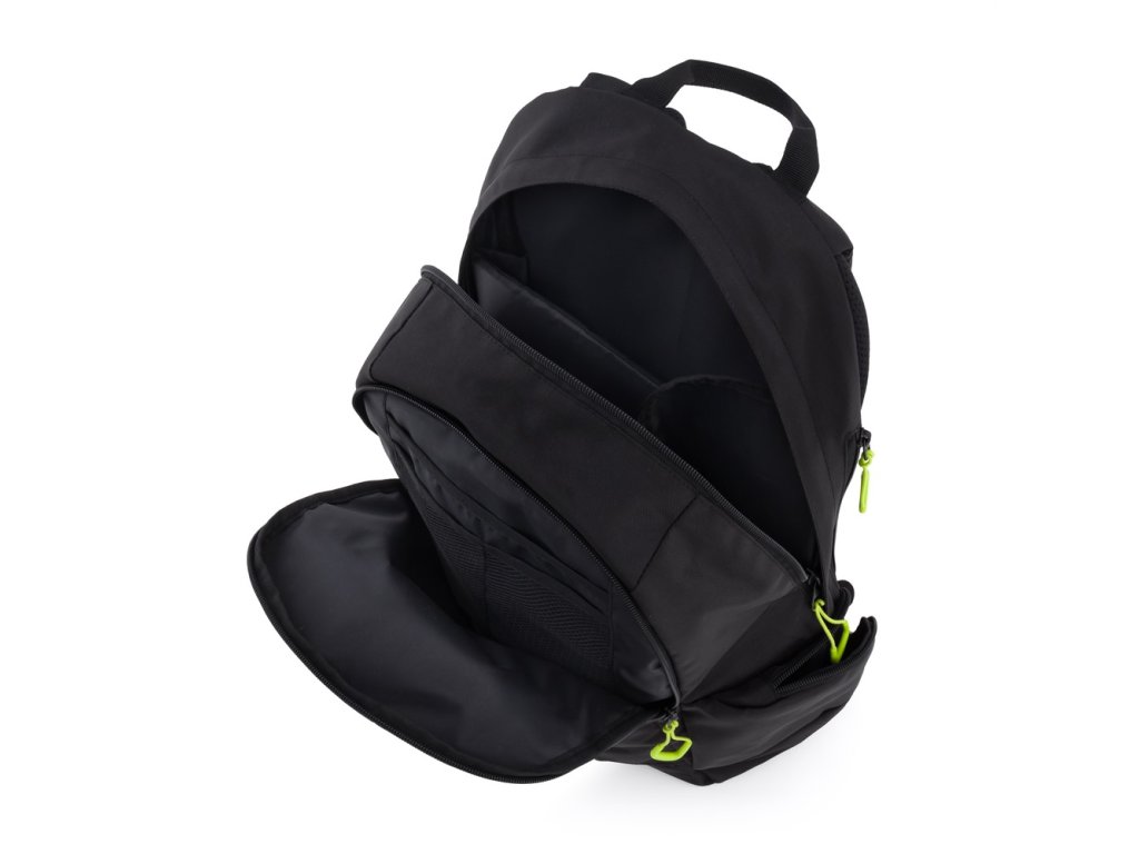 • Többcélú zsebek – rekesz 15" notebooknak, rejtett hátsó zseb, két oldalzseb (egy cipzáras, egy nyitott), valamint két első zseb kisebb tárgyaknak.
