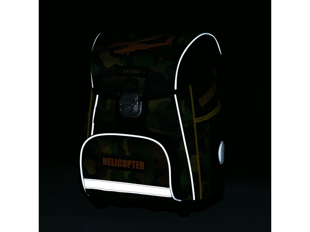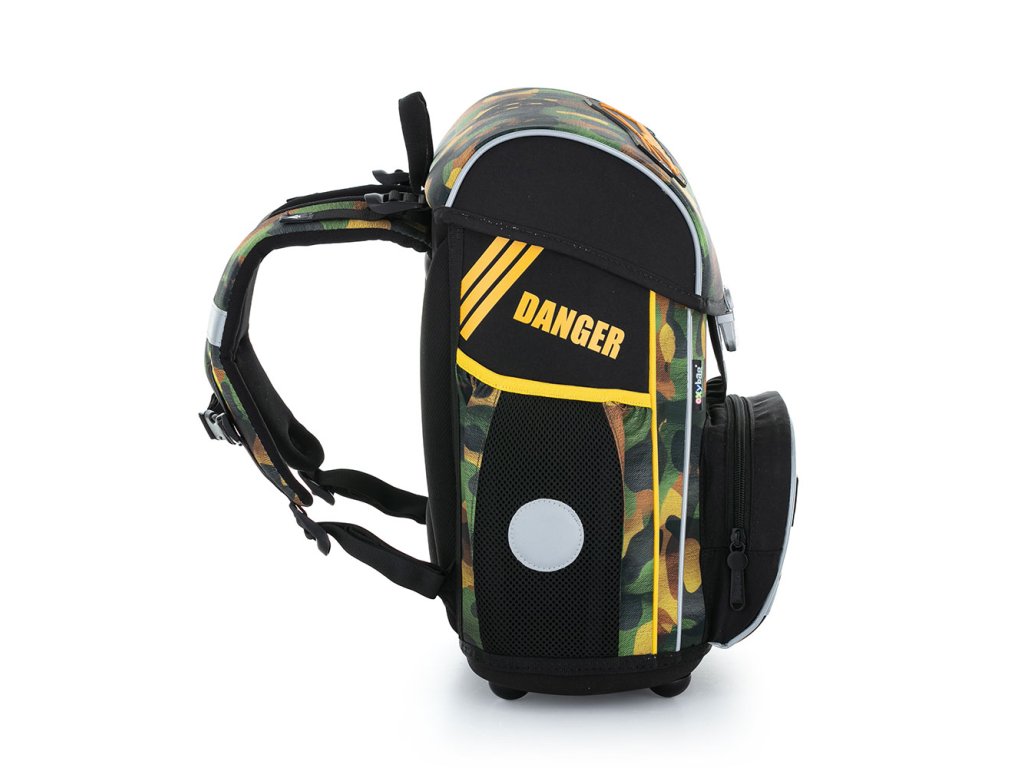A barátságos iskolai aktatáskába első látásra beleszeret: anatómiailag formázott és párnázott háttal, állítható pántokkal (váll és mellkas) rendelkezik, a belső megerősítésnek köszönhetően pedig tökéletesen tartja formáját.A szilárd lábakkal ellátott alap megakadályozza, hogy a külső rész szennyeződjön, és a belsejében kiömlött anyagok kiszivárogjanak. Elöl egy praktikus uzsonnazseb, oldalt pedig két nagyobb zseb található. Értékelni fogja a biztonságos záródást biztosító csatot és a fényvisszaverő elemeket is.