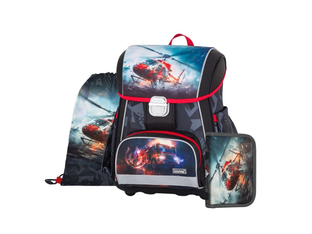 Školai PREMIUM iskolatáska egyszintes tolltartóval és váltócipős zsákkal.