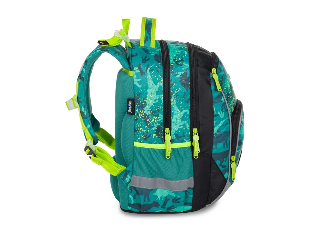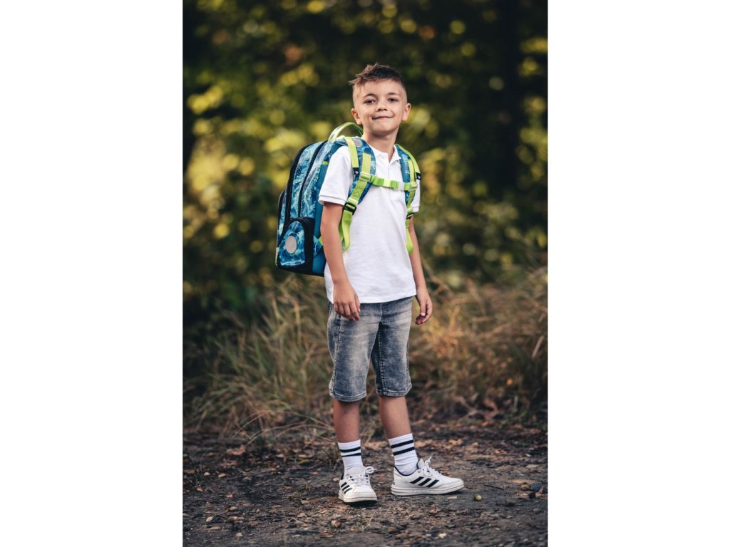 Az oldalsó részeken két nagyobb zseb található. Akármit is visel a gyermek a hátizsákban, semmi nem fog elveszni, mivel a hátizsák rengeteg különféle zsebet kínál, legyenek azok nagyok vagy kicsik. Így a kulcsok keresése a hátizsákban nem jelent problémát. Könnyű, ugyanakkor elég tágas minden olyan dologhoz, amit minden iskolás szeretne kéznél tartani. A gyermekek biztonságára is gondoltunk, ezért a hátizsákon reflektáló elemek találhatók. A hátizsák ideális az alsó tagozatra (1.–3. osztály), 125 cm feletti gyermekeknek.