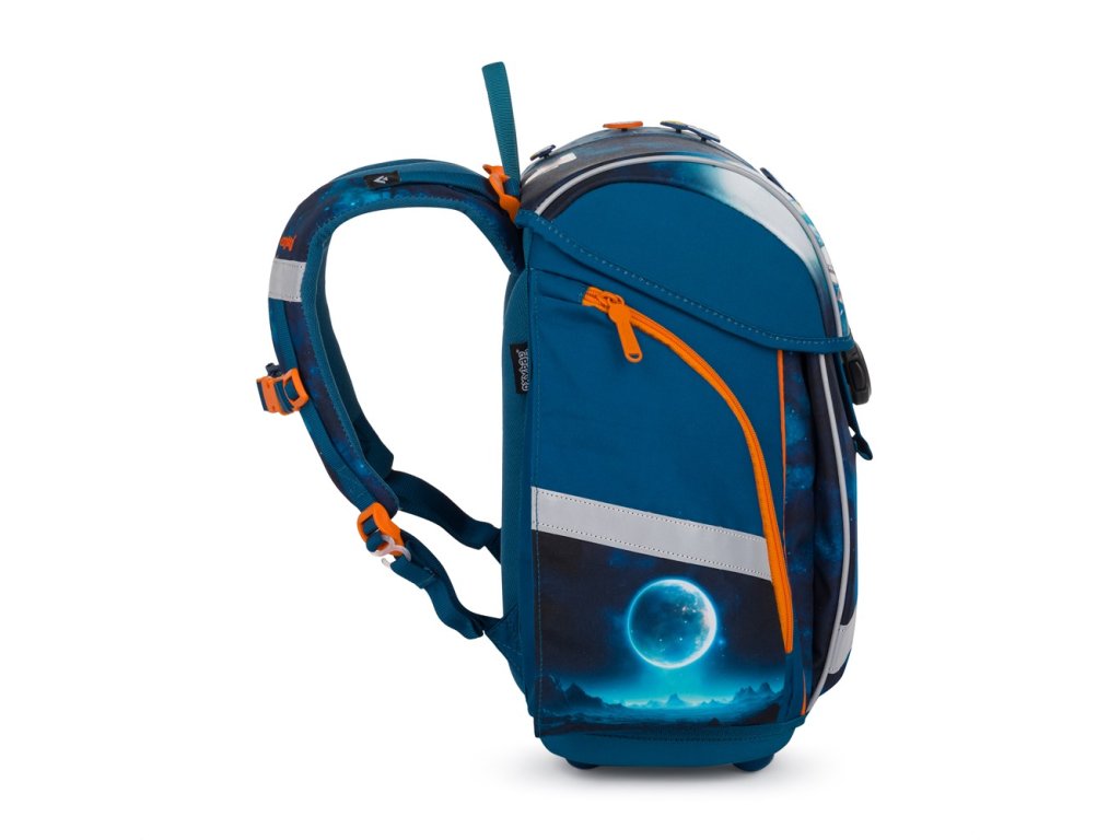 Okos részletek: fő rekesz elválasztóval, névjegycímkével és órarenddel, állítható váll- és mellpánt, vízálló megerősített alj, tágas zsebek az uzsonnás doboz és az iskolai kellékek számára.