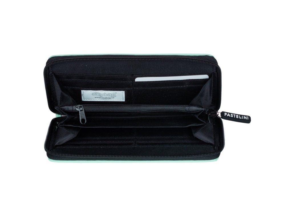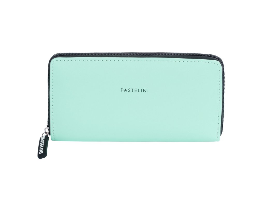 Női pénztárca MONY L PASTELINI Zöld – tágas és elegáns, 8 kártyatartó rekesszel, 2 nagyobb zsebbel, 3 elkülönített rekesszel készpénz számára, valamint cipzáras zsebbel az aprópénzhez.