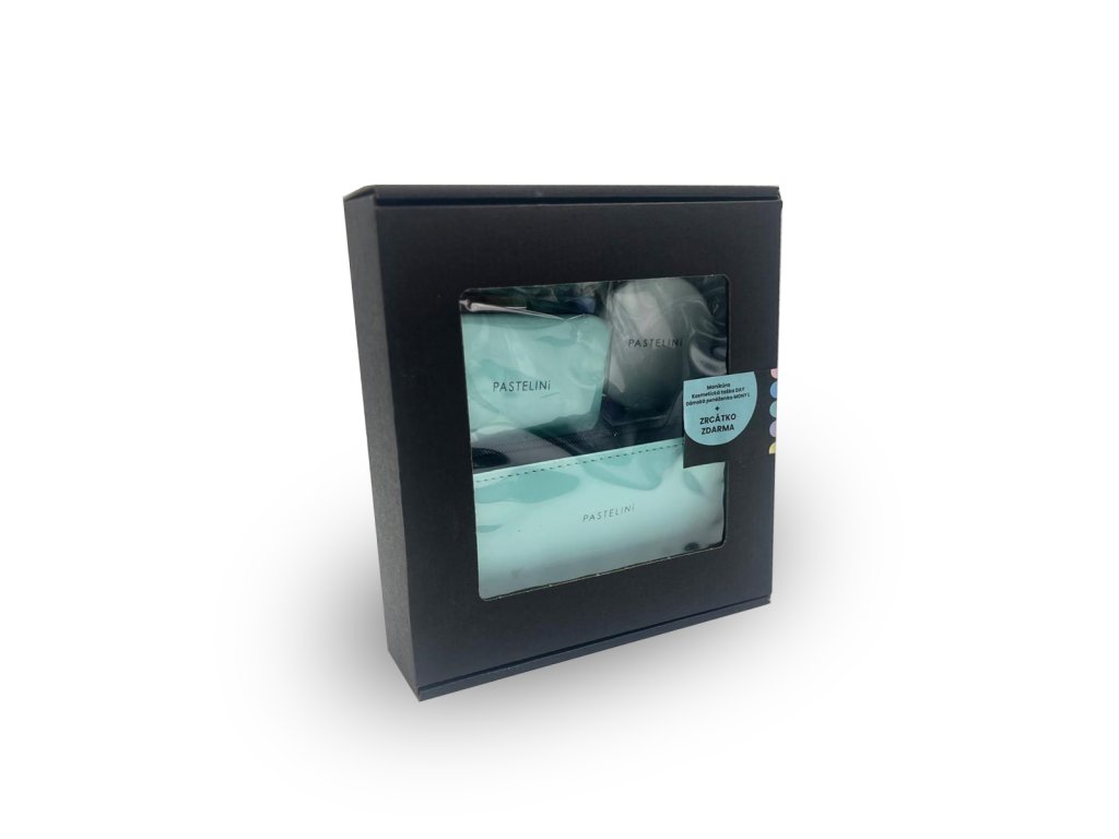 Egy elegáns ajándékszett nőknek, finom pasztell árnyalatokban, amely minden hölgyet megörvendeztet, aki szereti a stílust és a praktikumot. Tartalmaz egy pénztárcát, kozmetikai táskát, tükröt és manikűrkészletet – ideális ajándék nőknek karácsonyra, születésnapra vagy csak úgy, örömszerzésre.