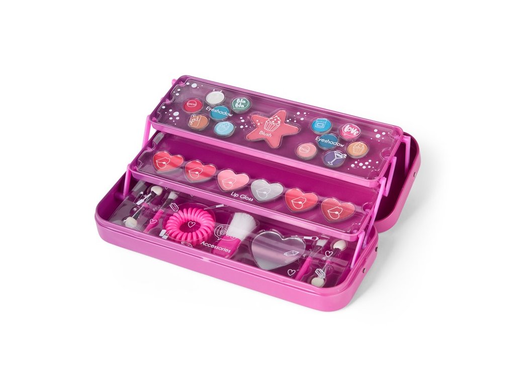 Háromszintes fém sminkkészlet – teljes szett kis divatrajongóknak.