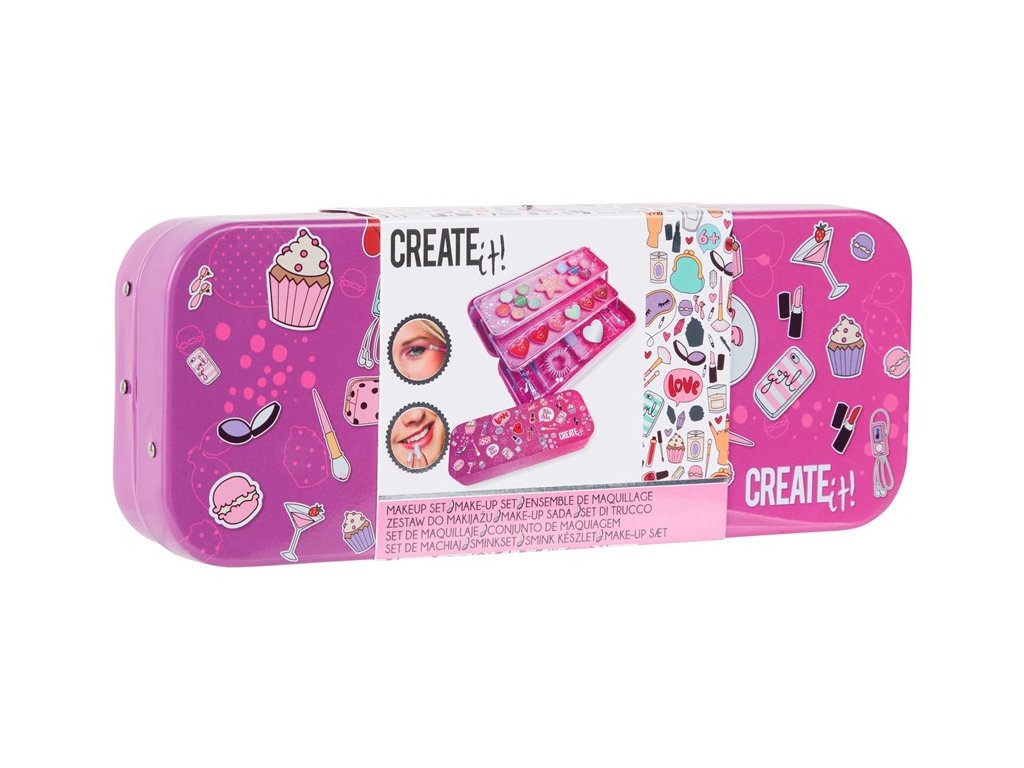 Fedezd fel a sminkelés varázsát ezzel az elegáns fém kazettával, amely praktikus, három szintre nyitható kialakításával tele van színes és illatos termékekkel. Minden, amire egy tökéletes megjelenéshez szükséged van, egy helyen!