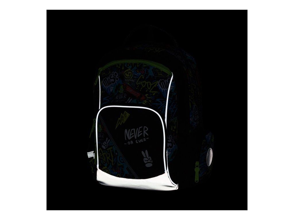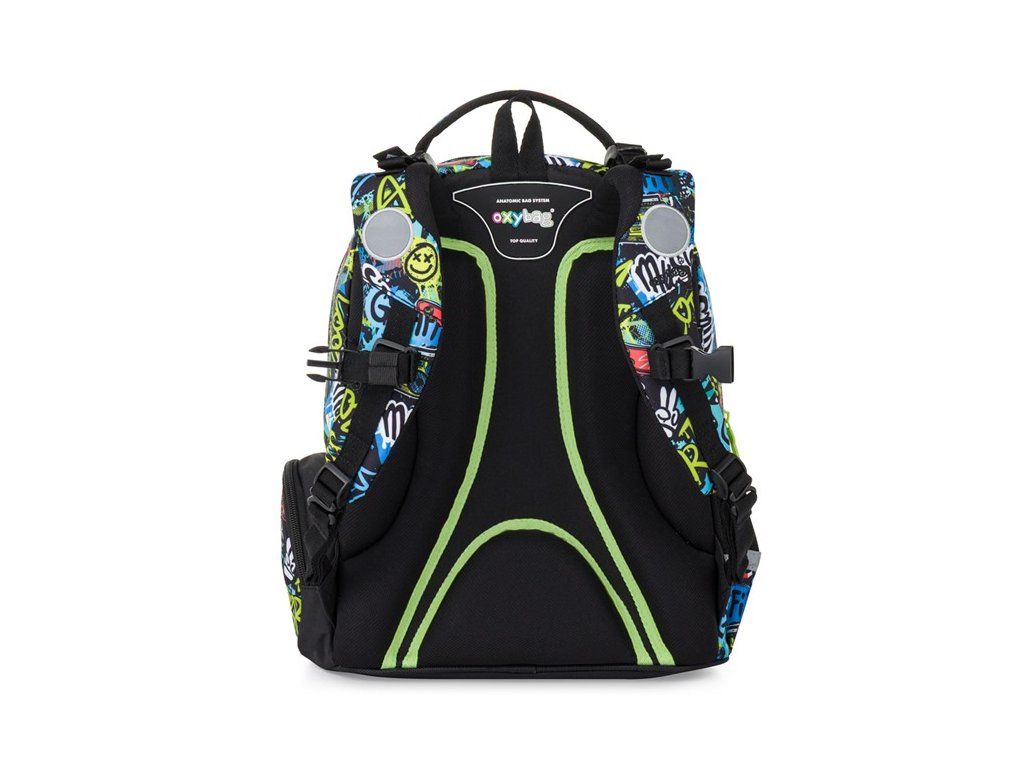 Az OXY GO iskolai aktatáska modern dizájnjával és praktikus funkcióival tűnik ki. Az ergonomikusan formázott és jól szellőző háttámla kényelmes hordozást biztosít. Az állítható vállpántok az egészséges és kényelmes viselést támogatják.