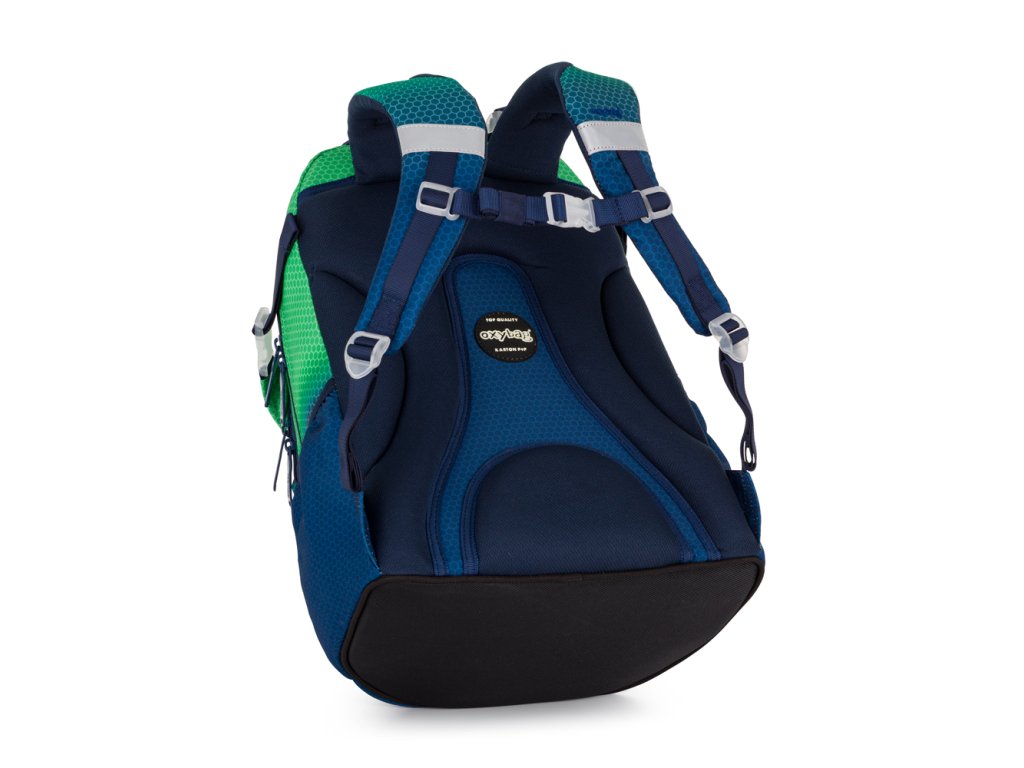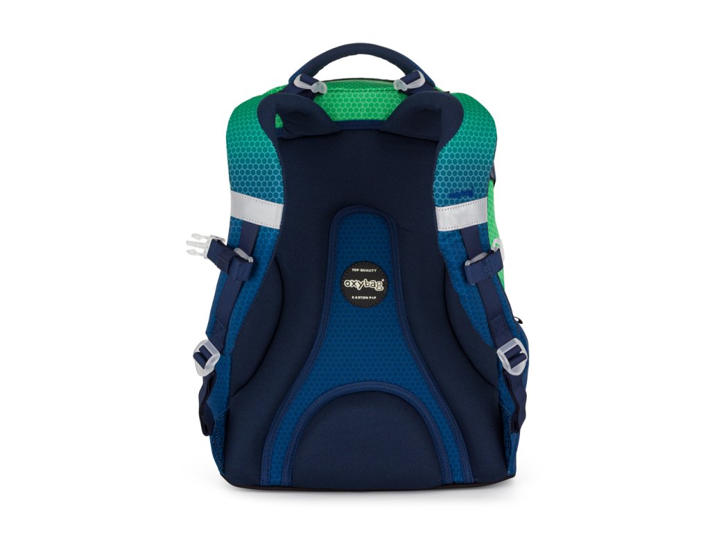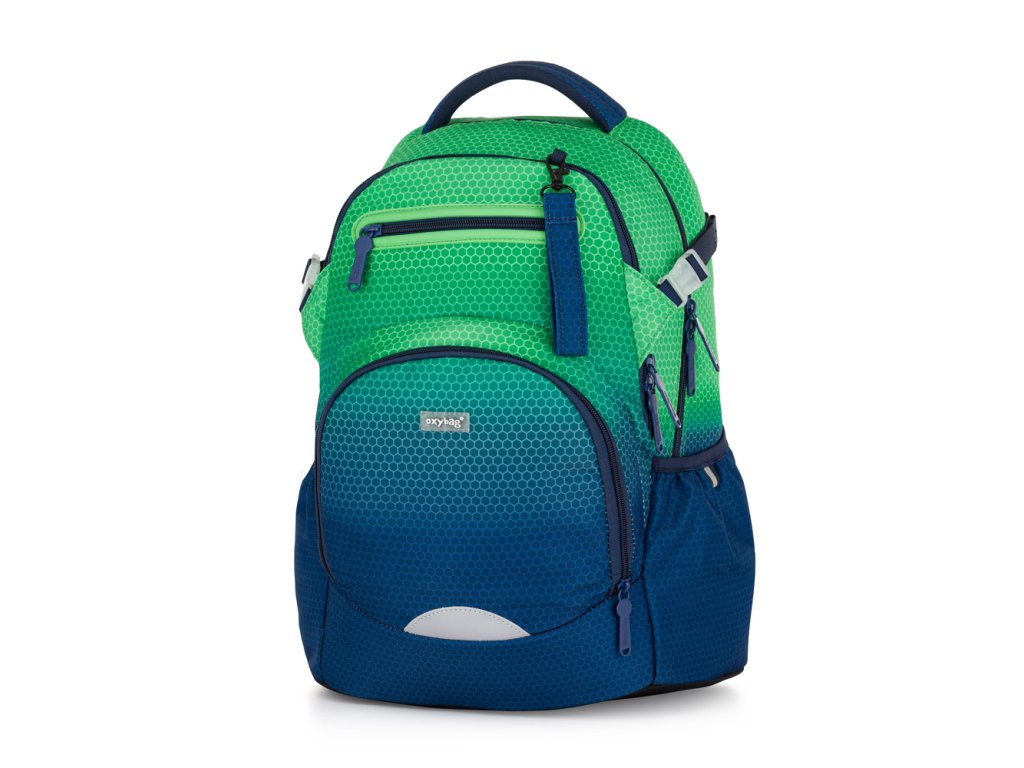 OXY Ombre – könnyű iskolai hátizsák (mindössze 960 g) ergonomikus kialakítással, modern dizájnnal, bőséges tárolóhellyel és fényvisszaverő elemekkel a biztonság érdekében.