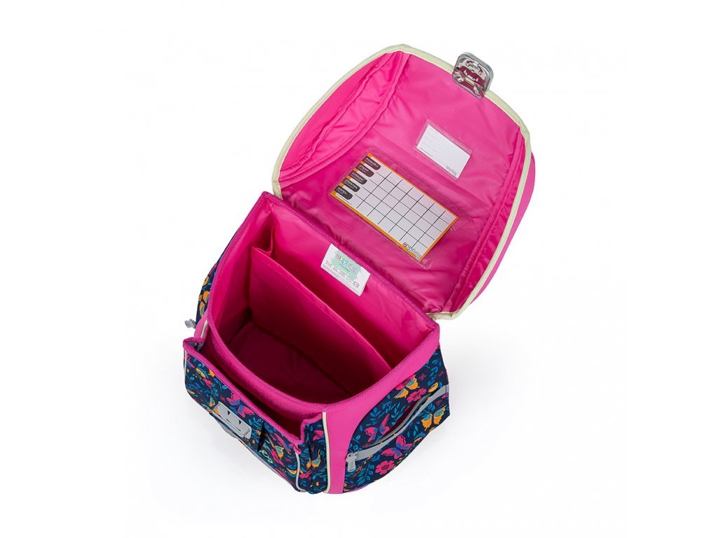 A Premium Light sorozatú iskolai hátizsák, pillangó motívummal, minőséget, helyet az iskolai felszereléseknek és könnyű kialakítást kínál a kényelmesebb hordozás érdekében. A könnyű anyagnak köszönhetően a hátizsák súlya mindössze 970 g.