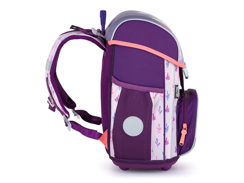 A barátságos iskolai aktatáskába első látásra beleszeret: anatómiailag formázott és párnázott háttal, állítható pántokkal (váll és mellkas) rendelkezik, a belső megerősítésnek köszönhetően pedig tökéletesen tartja formáját.A szilárd lábakkal ellátott alap megakadályozza, hogy a külső rész szennyeződjön, és a belsejében kiömlött anyagok kiszivárogjanak. Elöl egy praktikus uzsonnazseb, oldalt pedig két nagyobb zseb található. Értékelni fogja a biztonságos záródást biztosító csatot és a fényvisszaverő elemeket is.