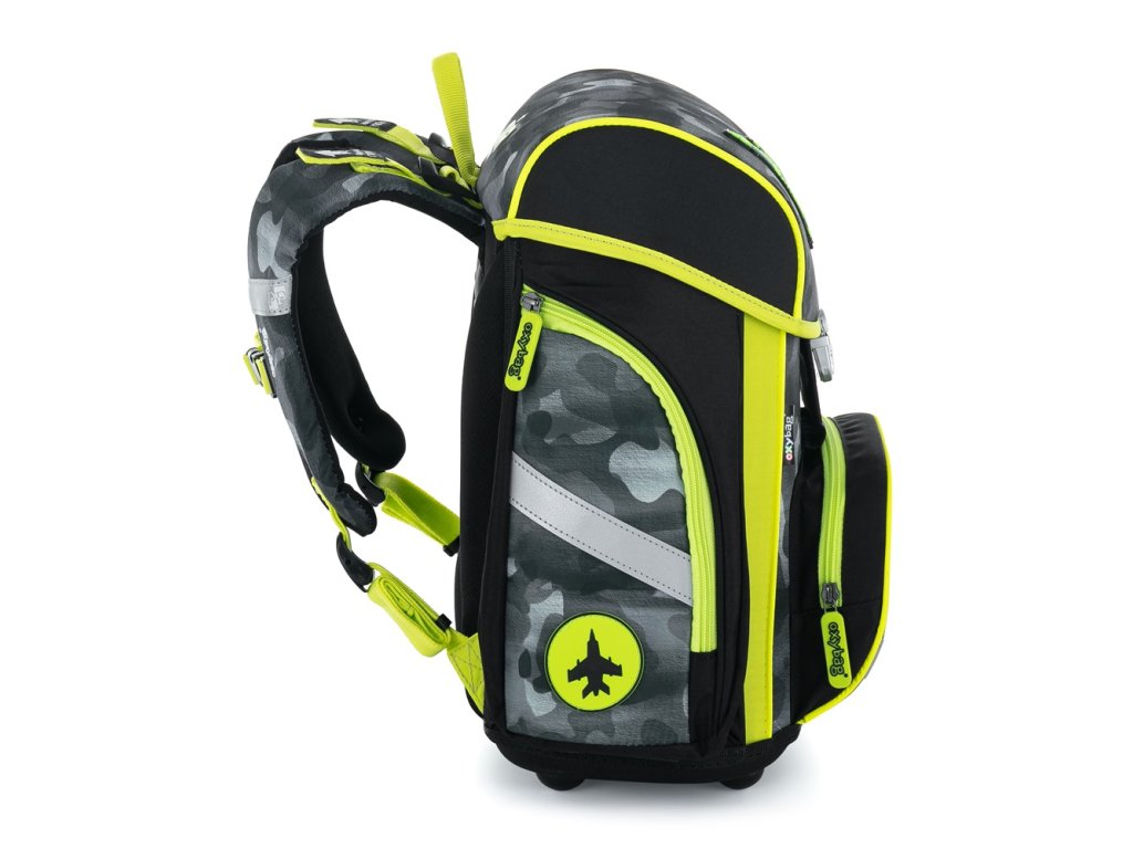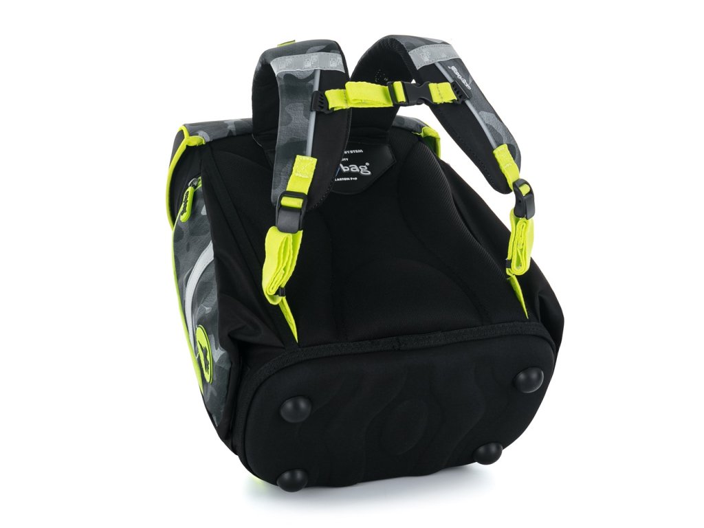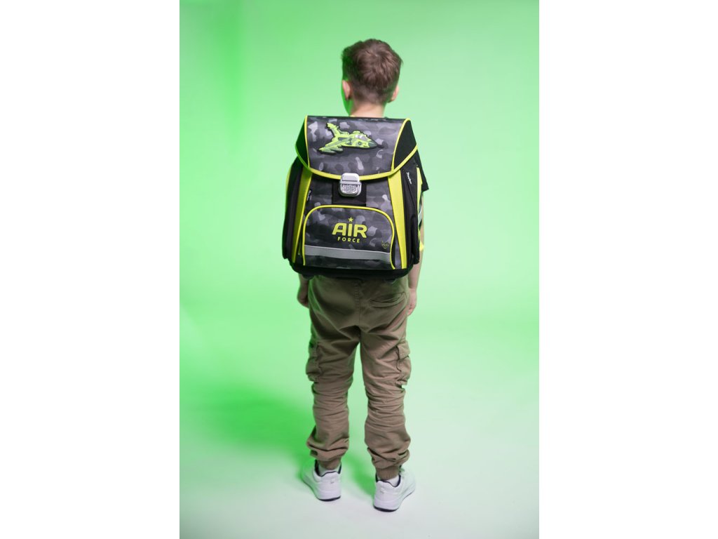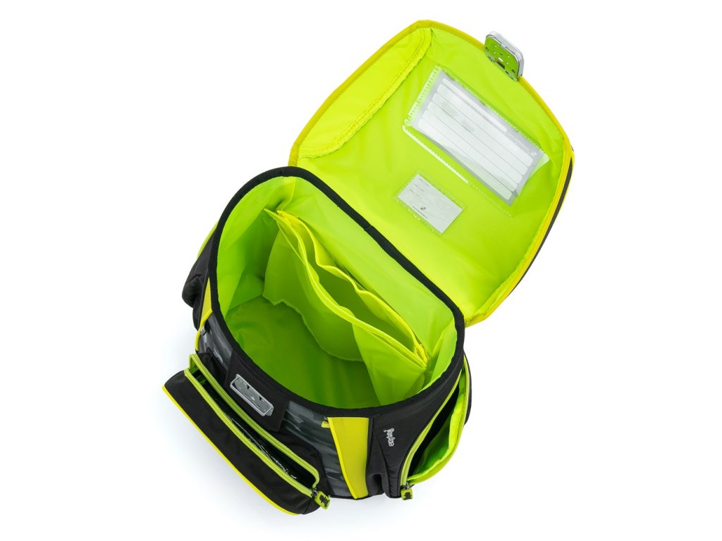 A barátságos iskolai aktatáskába első látásra beleszeret: anatómiailag formázott és párnázott háttal, állítható pántokkal (váll és mellkas) rendelkezik, a belső megerősítésnek köszönhetően pedig tökéletesen tartja formáját.A szilárd lábakkal ellátott alap megakadályozza, hogy a külső rész szennyeződjön, és a belsejében kiömlött anyagok kiszivárogjanak. Elöl egy praktikus uzsonnazseb, oldalt pedig két nagyobb zseb található. Értékelni fogja a biztonságos záródást biztosító csatot és a fényvisszaverő elemeket is.