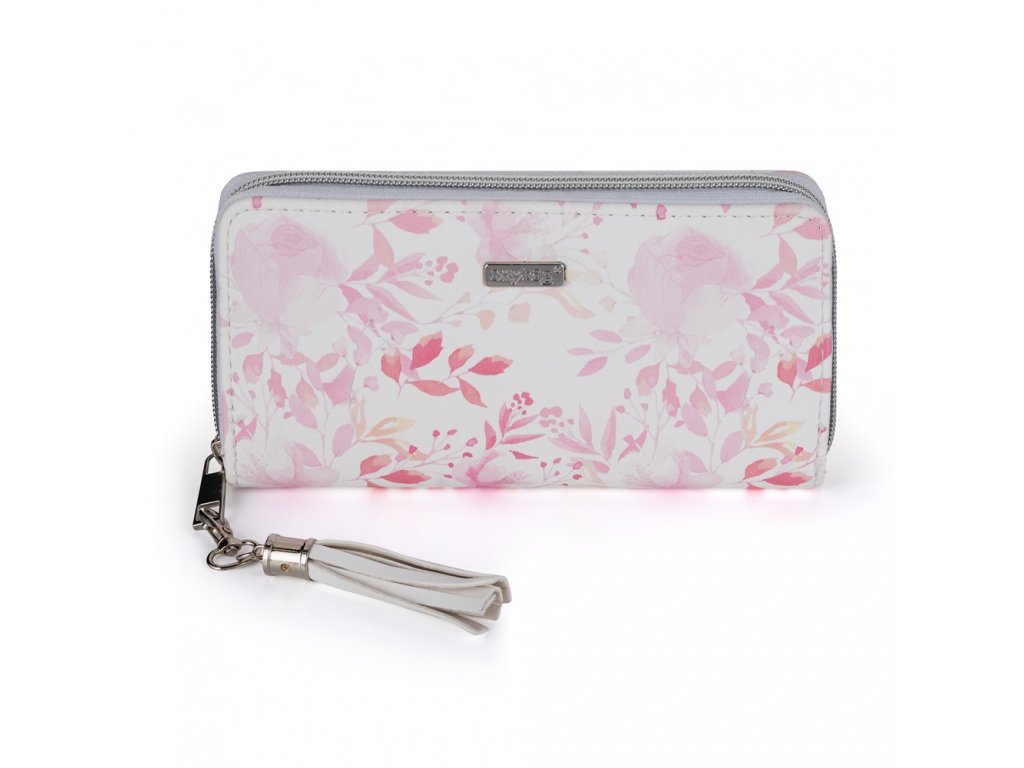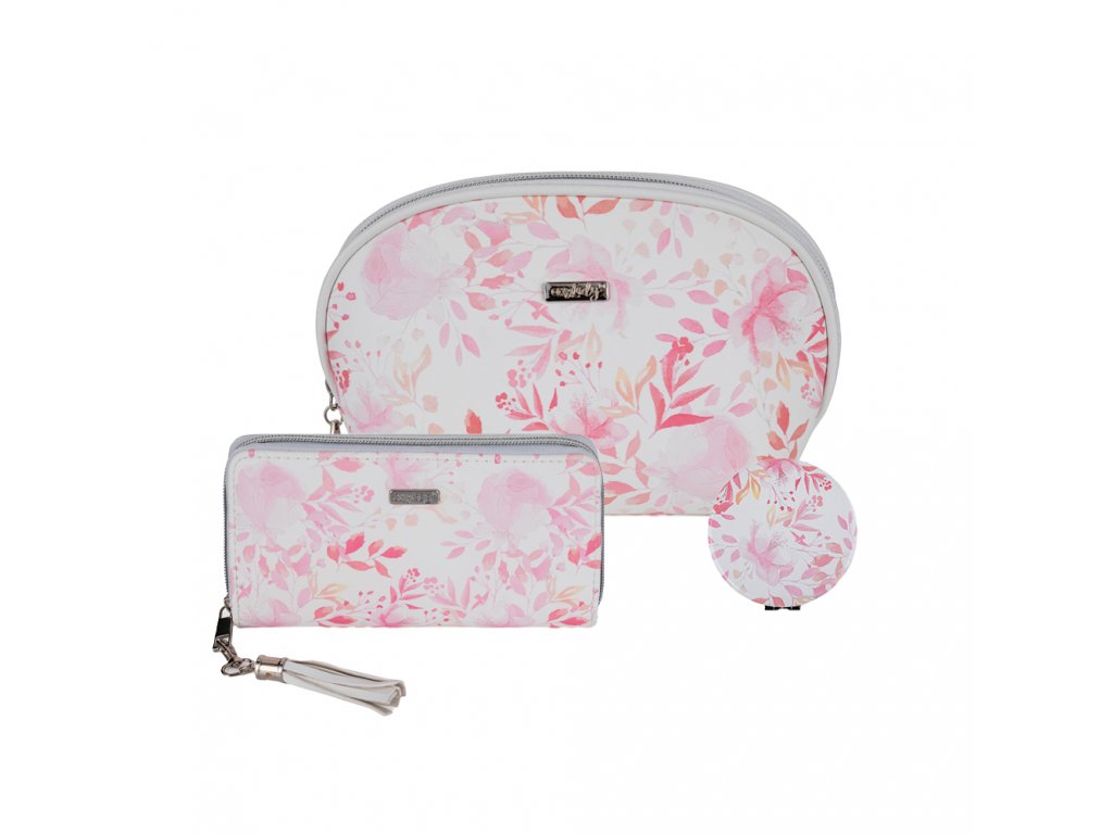 Készlet pénztárcával, sebtükör és kozmetikai táskával virágos kivitelben.