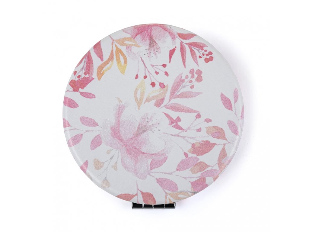 Zsebtükör virágos kivitelben. Megfelelő méret kézitáskába.
