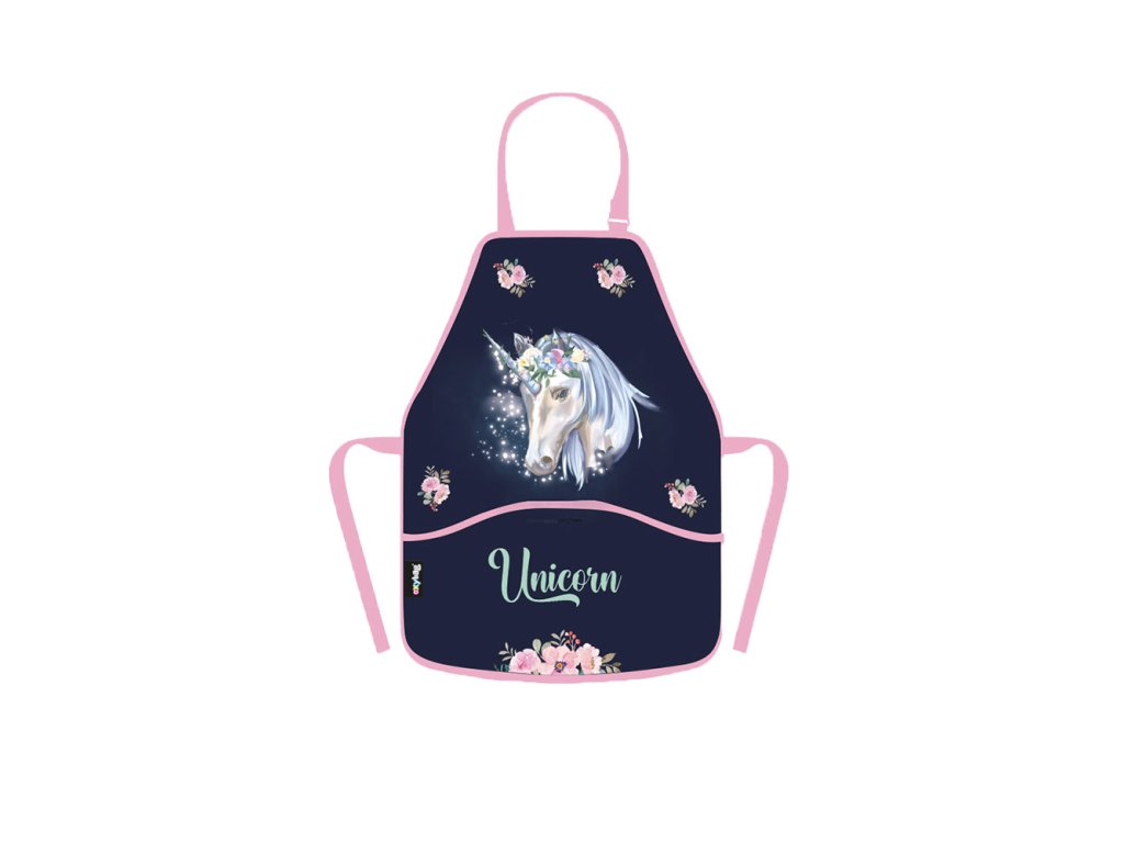 Kötény művészeti oktatáshoz vagy egyéb kreatív tevékenységekhez. Csatos rögzítés a nyak körül (hossz max. 50 cm), húzózsinór a derékban (max. 80 cm).