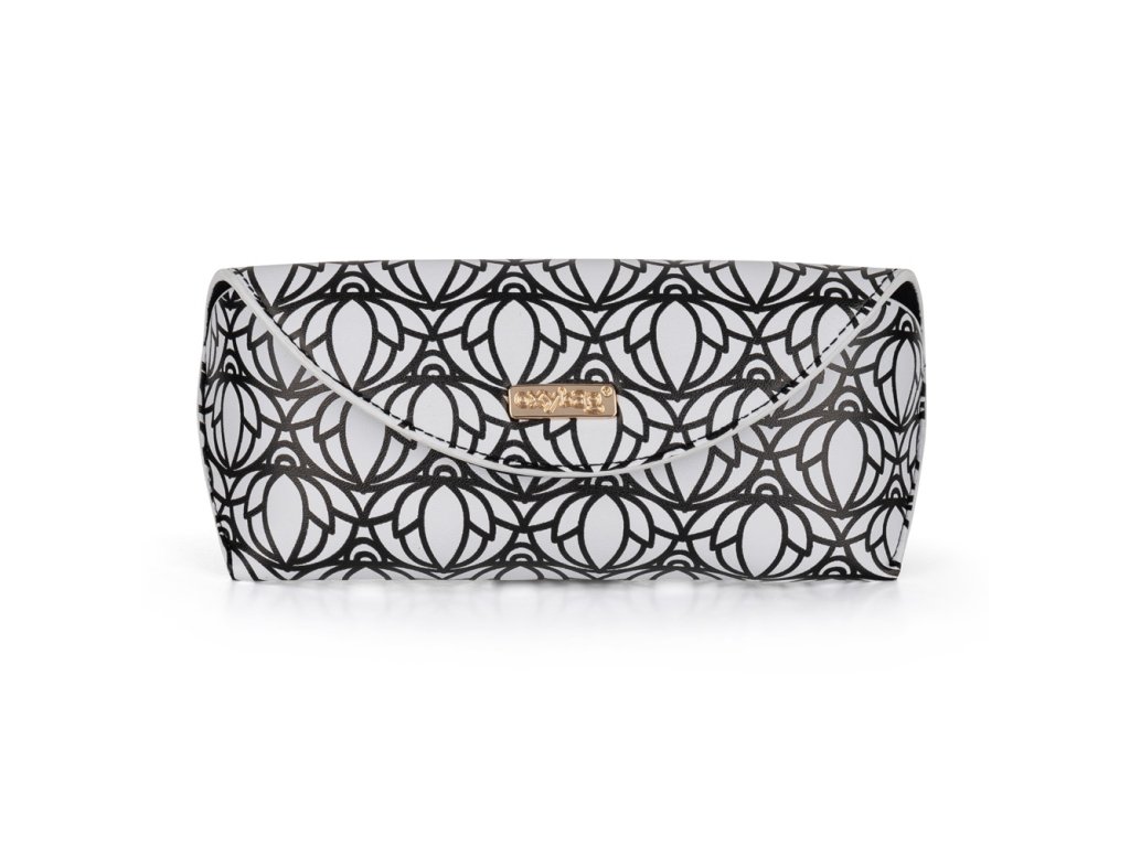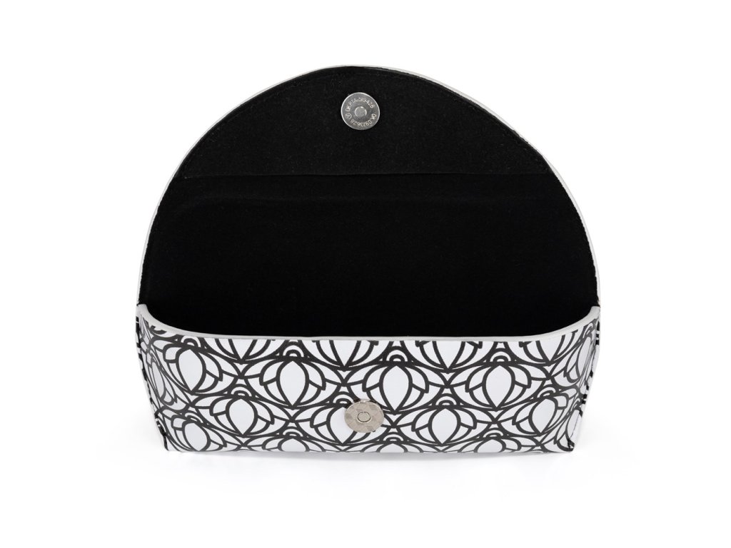 Szemüveg tok fekete-fehér kivitelben napszemüvegek és dioptriás szemüvegek tárolására. Mágneses rögzítés.