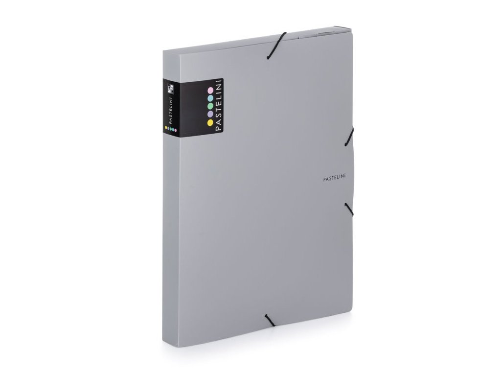 Irattartó doboz A4-es dokumentumokhoz, rögzítő gumival. Gerinc: 3 cm, erős polipropilénből készült.