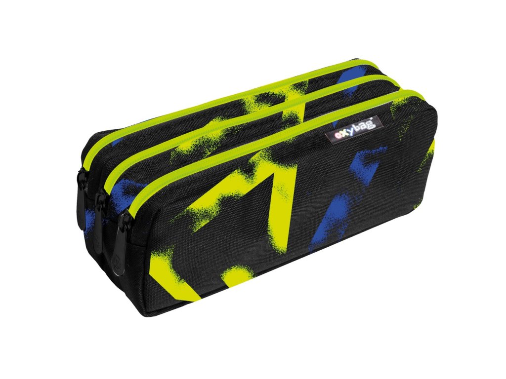 A modern, dizájnos tolltartó három külön cipzáras rekesszel rendelkezik, amelyek átlátható rendszerezést és elegendő helyet biztosítanak ceruzáknak, tollaknak, színes ceruzáknak és egyéb iskolai apróságoknak.